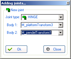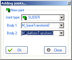 В сочленение объединяются модель тележки и неподвижное основание: