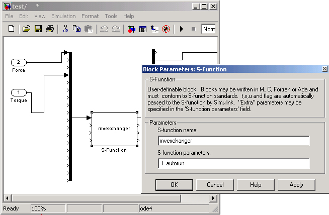 внешняя сила(момент) должны задаваться Matlab'oм,